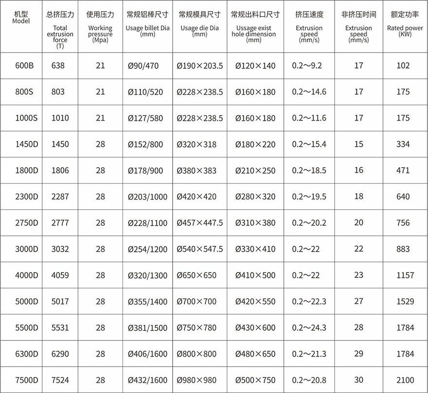 Aluminium extrusion press is horizontal hydraulic press, single action, long stroke ,back loading ,with four prestress tie-rods; Frame base is welding-joint parts, Front platen, back platen, container supporter and piston supporter is made of 35# casted steel, main cylinder is made of 35# forged steel. Motors are placed on the below of the oil tank.