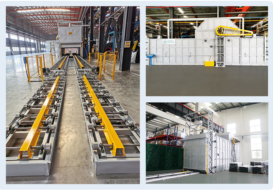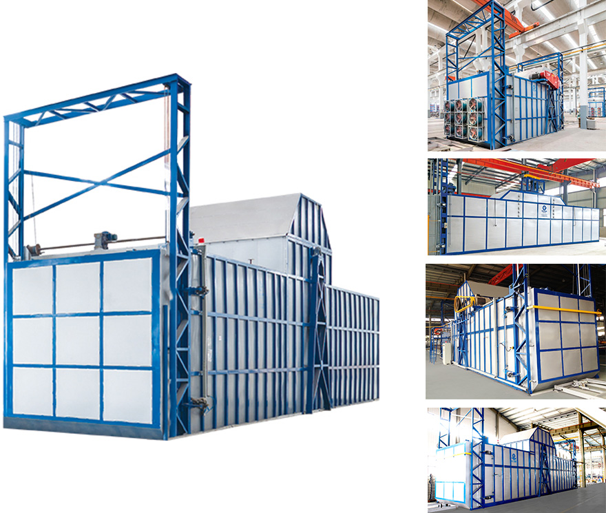 l The furnace is made of pre-shaped steel plates,and equipped with special designed air blower,with advantages of high pressure and high flow,to circulate the hot air inside furnace more evenly,so as to ensure the aluminium profile quality after aging.